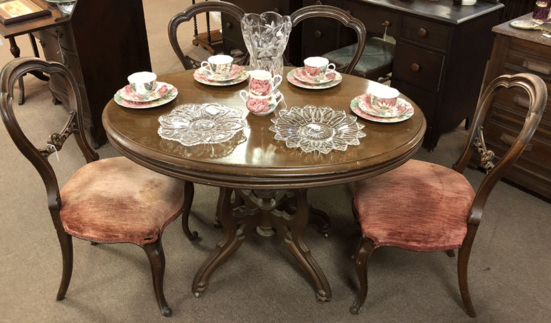 In the gallery, you will find pictures of a small sampling of the many beautiful items you will find when you visit us at Wonderland Antiques and Curiosities.